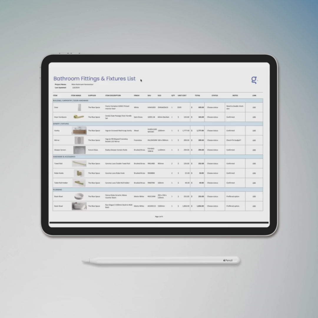 Are you planning a bathroom renovation or managing multiple bathroom projects? Our Bathroom Fixtures List Template is the perfect tool to keep all your fixtures organised and ensure nothing gets overlooked. This easy-to-use Excel template helps you track every detail, from item descriptions to supplier information, making your renovation projects run smoothly and efficiently.